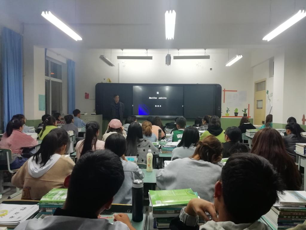 首先张宗舟教授向我们介绍了生活中常见的几种微生物,巧妙的把我们引入他的讲课思路中,张宗舟教授用他独特有趣的教学方式给我们很详细的介绍了抽象的枯草芽孢杆菌,枯草芽孢杆菌是革兰氏阳性细菌,能形成芽孢,是一些重要工业酶制剂的生产菌。由于其具有非致病性、分泌蛋白能力强的特性和良好的发酵基础,应用十分广泛也与我们的生活息息相关,围绕我们生活中当中的常见列子,张教授用详细、生动的授课语言,现实生活中鲜见的案列与同学们进行互动,19级食品营养与检测班同学受益匪浅,不时响起同学们热烈的掌声。最后张宗舟教授又向我们分享了他的研究成果和他的求学经历,也激励我们不能碌碌无为,要努力奋斗能够撑起一片蓝天。
