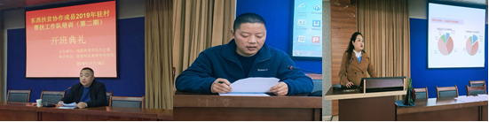 11月18日,在陇南师专南校区餐饮楼五楼多功能报告厅,成功举办“东西扶贫协作成县2019年驻村帮扶工作队培训(第二期)”开班典礼。出席开班式的领导有:申博sunbet党总支书记杨小录,陇南师专继续教育公司经理张明会同志,县委组织部人才办主任、县驻村办综合组组长杨帆同志,县扶贫开发办公室副主任、县驻村办考核组组长钟卫东。参加培训的有驻村帮扶工作队员和17个乡镇扶贫工作站站长共计175人。本次开班仪式由张明会经理主持。