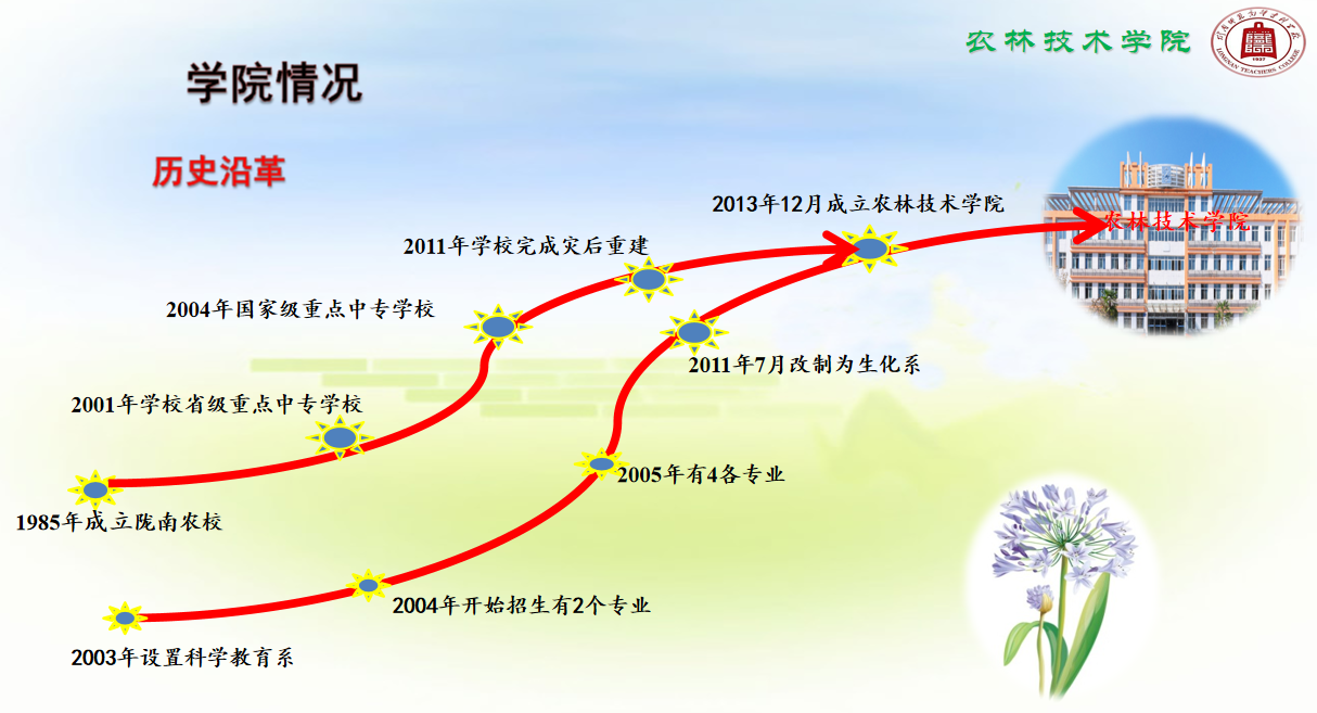 申博sunbet是2013年12月组建的二级公司,以培养涉农类应用型人才为特色的公司。以“立足陇南,服务“三农”,为地方经济社会发展培养高素质应用型人才”为办学定位;以“立德树人为根本,以服务发展为宗旨,以促进就业为导向,走产学研结合的发展道路”为办学指导思想;发展目标为:“通过努力,力争把公司建设成为适应陇南区域经济建设发展需要,特色鲜明、优势突出,在服务地方经济社会发展中有重要影响的应用型二级公司”。