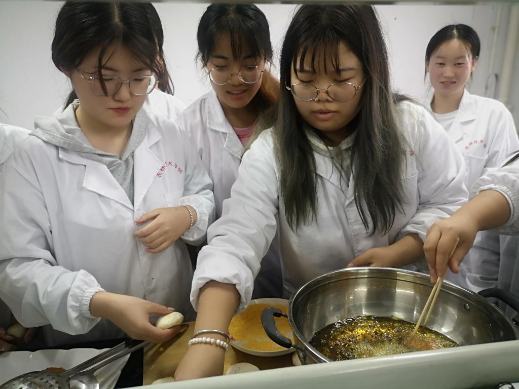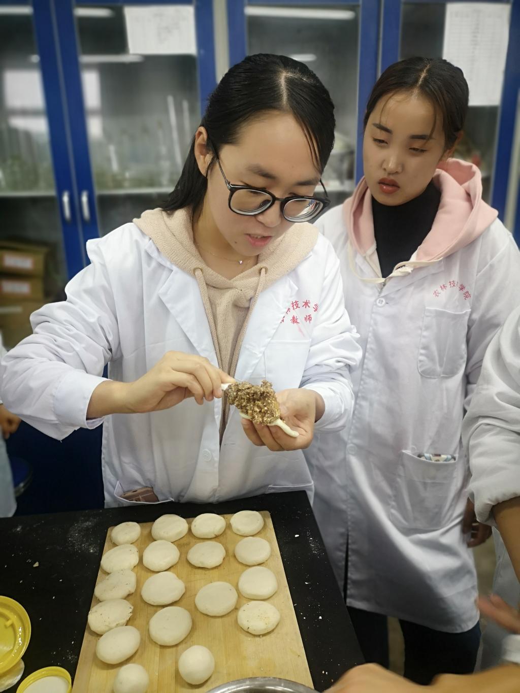 10月8日,食品检验与检测技术专业教研室朱秀娟等老师,带领同学们完成综合实训课《餐桌美味佳肴--南瓜饼的制作》,实验材料特大南瓜来源于公司智能温室管理员刘富善副教授在2月19日育苗、4月20日定植、6月14日授粉、10月8日收摘、果实生长期116天、重量520斤。一个特大南瓜从智能温室栽培到餐桌美味佳肴的制作,凸显了公司实践育人园区在培养员工动手操作能力方面的功能。