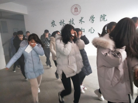 首先,副经理何九军讲述了活动中需要注意的安全问题,且给每位同学分发了活动演练的相关工具。接着,经理王让军对实验安全做了要求,并表示实验室安全就是要建立一个安全的教学的实验环境,减少实验过程中发生灾害的风险。紧接着,演练开始,当实训楼里发生烟雾时同学们利用工具以最快的速度离开楼层并全部到安全的达集合点。最后,保卫处负责人李德明给同学们示范灭火器正确的使用方法。