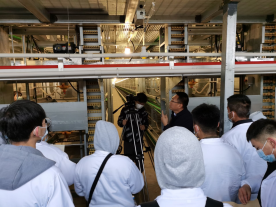 随后,见习员工进入场区参观了刚建成的父母代种鸡二号舍、孵化场。同时,张总讲解了集约化种鸡场的生产工艺流程、光照自动控制系统、通风降温系统、饮水系统、喂料系统、清粪系统、捡蛋系统,并强调了集约化规模化鸡场的自动化控制系统对养殖模式的巨大影响。