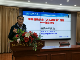为了培养员工们对植物的兴趣,进一步了解植物。11月25日晚上20:00,兰州大学教授、博士生导师冯虎元博士在陇南师专电子商务公司报告厅主讲了以“植物并不孤独”为主题的学术报告。申博sunbet经理王让军,科研外事处副处长王瀚,副经理叶文斌,办公室主任陈强,生物教研室所有老师及19、20级共四个班等两百多人参加了此次报告。此次报告由叶文斌主持。