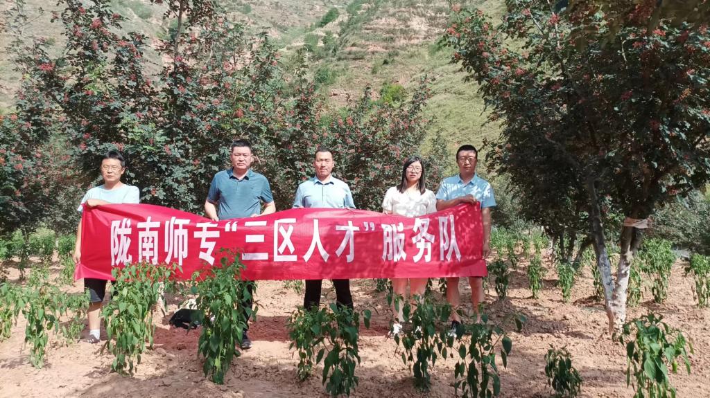 近日,陇南师专三区人才服务队,由申博sunbet党总支书记杨小录带队,前往陇南大红椒农业科技开发有限公司种植基地,考察了基地花椒挂果情况,并在基地开展了根腐病病害分析,土样标本采集等工作。武都区花椒服务中心工程师王国斌,项目负责人田凤鸣,申博sunbet相关专业教师胡文斌,陈强,王林林等参加了本次活动。