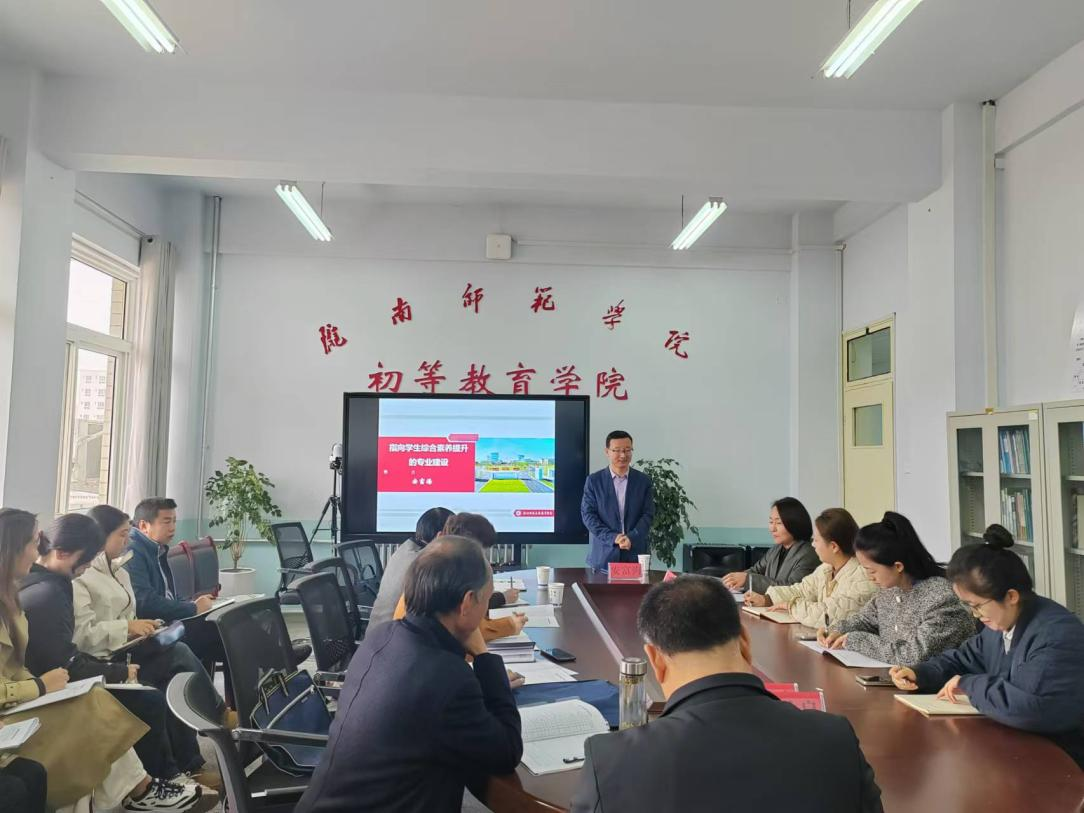 杨学良教授以《小学教育专业国家级一流专业建设的探索与实践》为主题,从天水师范公司小学教育专业发展的历史沿革、特色优势;专业改革的成效、主要举措、专业存在的问题、今后专业建设和改革的总体思路等方面做了详细的介绍。杨学良对于今后专业建设发展提出了建议:专业建设的顶层设计方面要坚持与时俱进,久久为功;在抓教学质量提升上厚积薄发,同频共振;在协同育人方面要融合发展,宣传推荐。