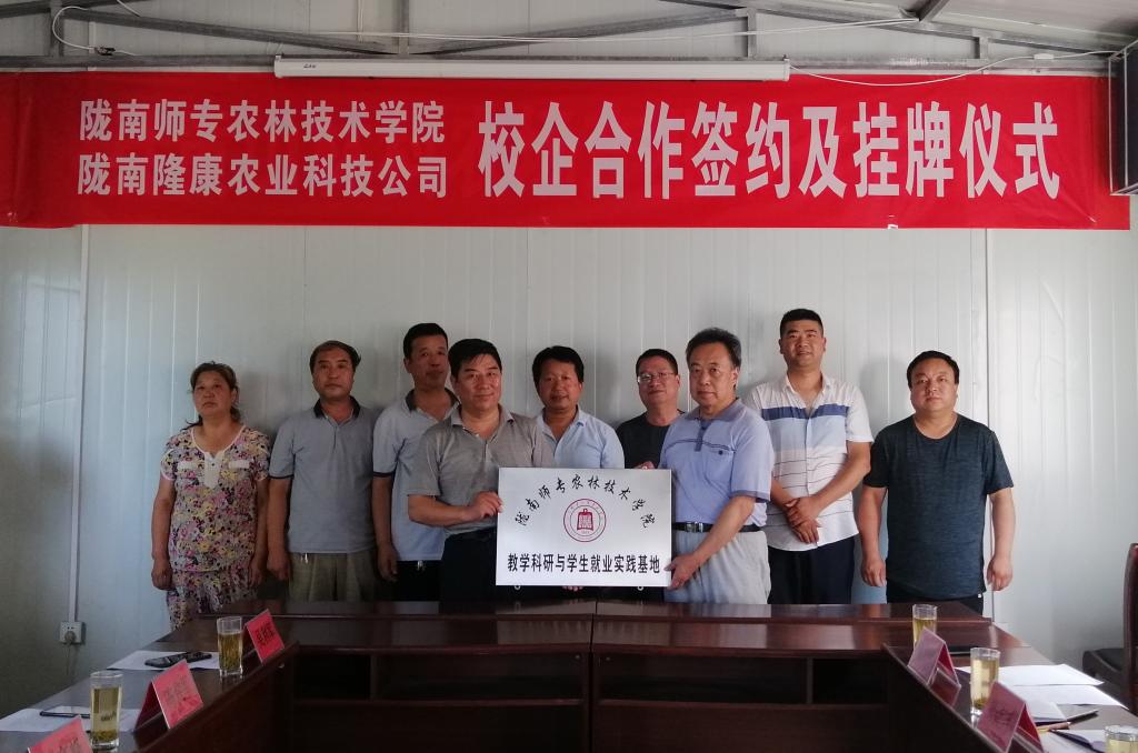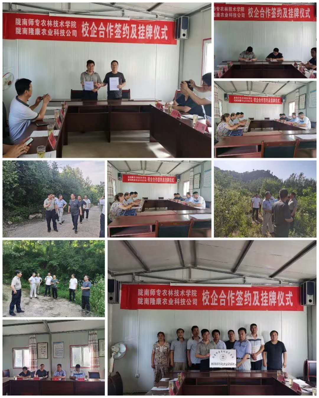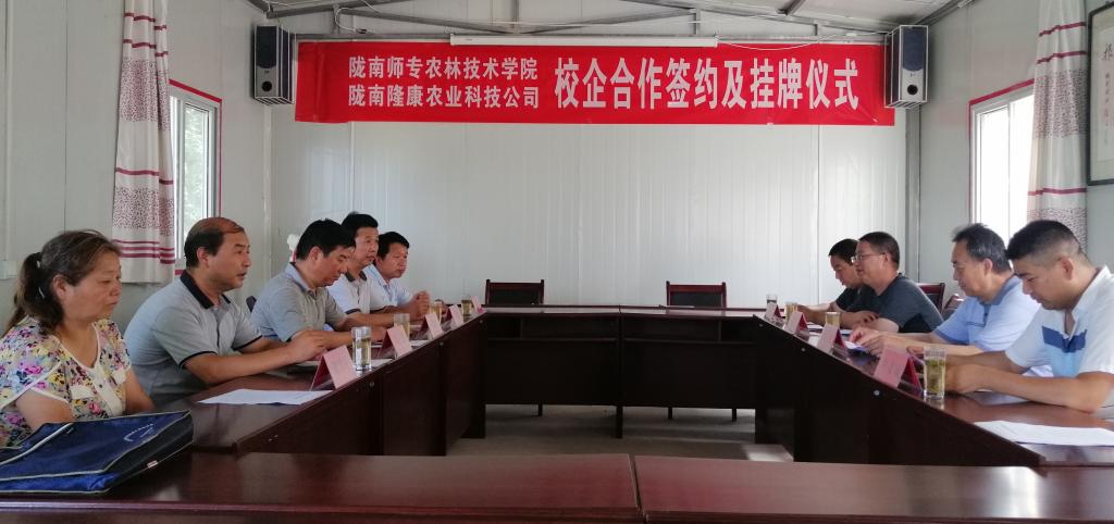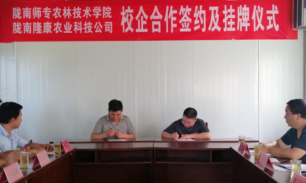 6月30日,申博sunbet经理王让军与陇南隆康农业科技公司董事长牛高峰,在成县陈院镇陇南隆康农业科技公司会议室举行校企合作签约仪式。签约结束后甘肃农业大学教授、博士生导师,陇南师专特聘教授,申博sunbet名誉经理李唯向陇南隆康农业科技公司董事长牛高峰,授教学实践与科研基地的牌子。陇南隆康农业科技有限公司党支部书记陈侠军、技术总监吴利军、副董事长谭雪平;成县兴丰农业科技公司董事长郭兴贵;申博sunbet党总支书记杨小录;副经理叶文斌、何九军等参加了活动。