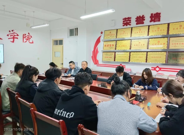 于10月6日晚上,申博sunbet组织2023级班长及其团支书于教学楼108会议室开展团学干部经验交流会,此次会议由何玉鹏老师主持,由员工分会执行主席达泽涛同学和团总支副书记马雪琳同学进行分享发言。