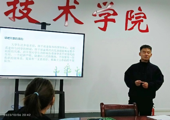 首先,达泽涛同学从班委组建的意义、班委职责、班会的形式和类型、为什么当班委,这四个方面结合自身经验进行分享。其次,马雪琳同学分享了对团支书的理解、团支书的主要工作内容、着重介绍了到梦空间有关问题。最后,何玉鹏老师对本次会议做总结发言并对新生干部提出希望和要求,一要端正服务态度,提高服务意识;二要提倡互助精神,增强合作意识;三要树立明确目标,坚定决心意志,勤于反思总结。