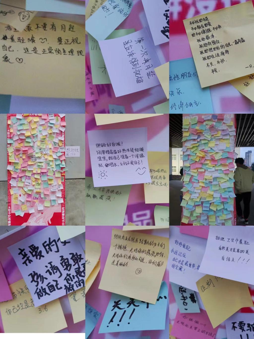 此次活动以写便利贴的形式展开,同学们踊跃参加,这不仅使更多的女性敢于直面月经话题带来文化观念的束缚,而且促进了正面沟通和信息分享。