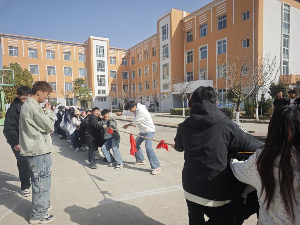 3月23日,团总支组织部在北校区篮球场举办了以“绳采飞扬,力拔山河”为主题的拔河比赛,吸引众多同学参加。共有5个班级参与比赛。