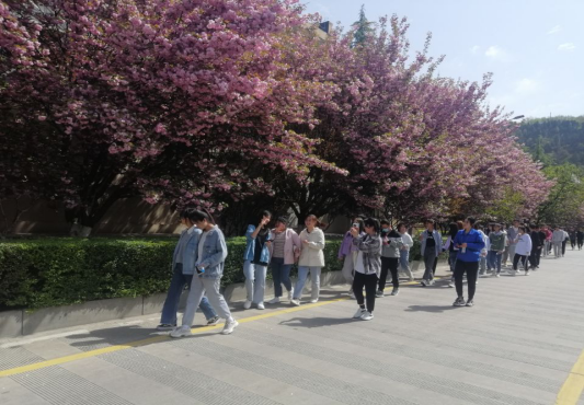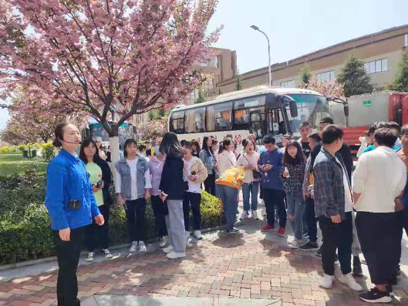 随后讲解员带领大家来到了金徽酒厂非常有名的一处景观:樱花大道,在这里同学们欣赏到了如云似霞,花开荼蘼的樱花,领略了酒厂里的春日美景。