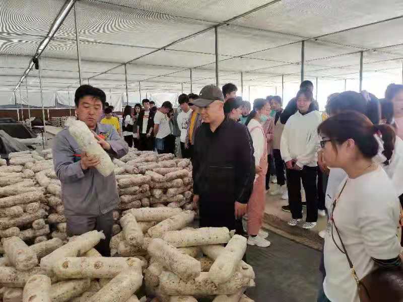 紧接着,同学们还参观了辛亮菌业,辛亮菌业推行“四统五带”产业扶贫模式。整合村集体闲置土地和贫困户剩余劳动力,发展食用菌一体化产业,实现企业、村集体和贫困户三赢。令同学们钦佩不已。