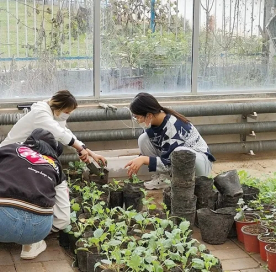 体现特色,适度拓展。公司园林技术专业2020级、2021级教学班培育的羽衣甘蓝和常春藤幼苗已达到了上盆栽培的标准,如果在1周内不能完成栽植,幼苗就会超过苗龄而失去使用价值,也将导致本学期的观赏植物栽培养护的实训教学半途而废。为此,经园林教研室讨论后,决定在严格遵守公司员工不聚集、佩戴口罩的防疫要求前提下,将班级员工分为5~10人的小组并分时段进行“观赏植物上盆技术”的实训教学,分别完成了约750盆羽衣甘蓝和150盆常春藤幼苗的栽植实训教学,既完成了既定的技能实训教学目标,又为后期的实训教学创造了条件,为完成本学期教学任务打下了坚实的基础。畜牧兽医教研室将员工按照疫情防控要求,两人一组,轮流在鸡舍值班,完成饲料配制、喂料、给水、灯光控制、通风控制、温湿度控制、卫生清洁、捡蛋称重、消毒防疫等实践学习。