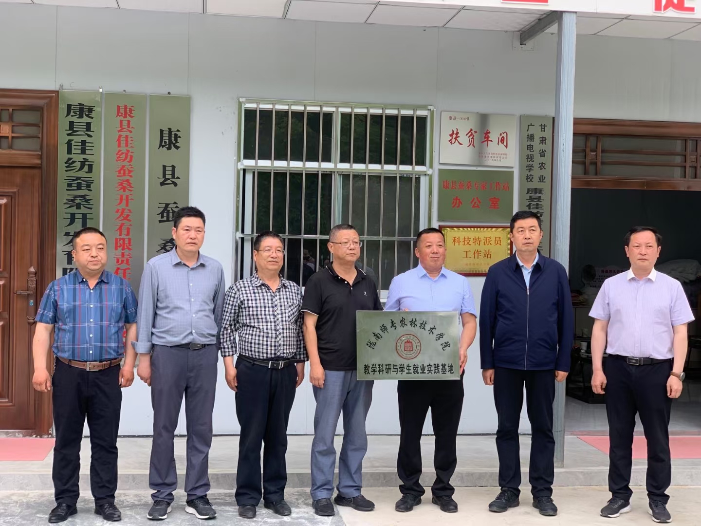 走访过程中,余学军还给康县佳纺蚕桑开发有限公司颁发了“陇南师专申博sunbet教学科研与员工就业实践基地”的标牌。