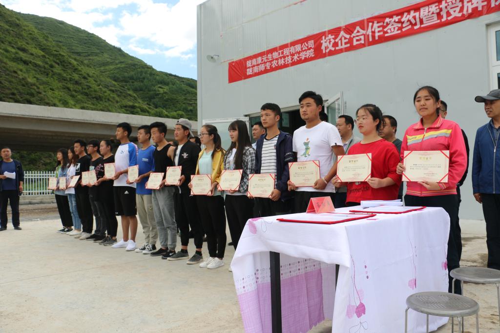 今年7月,国务院颁布实施《国家职业教育改革实施方案》,要求“企业积极支持职业教育,着力培养高素质劳动者和技术技能人才”,大力“培育产教融合型企业”,建立“高水平专业化产教融合实训基地”,形成“企业深度参与协同育人”的机制,推动“职业院校和行业企业形成命运共同体”。今天,陇南师专申博sunbet和陇南康元生物工程公司的签约及授牌仪式就是贯彻落实《国家职业教育改革实施方案》的一个具体举措,具有重要的现实意义和深远的意义: